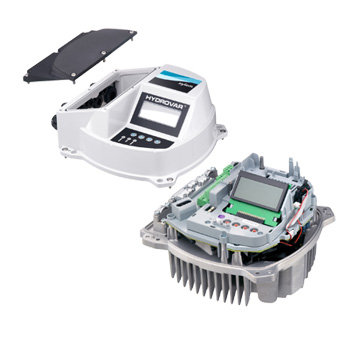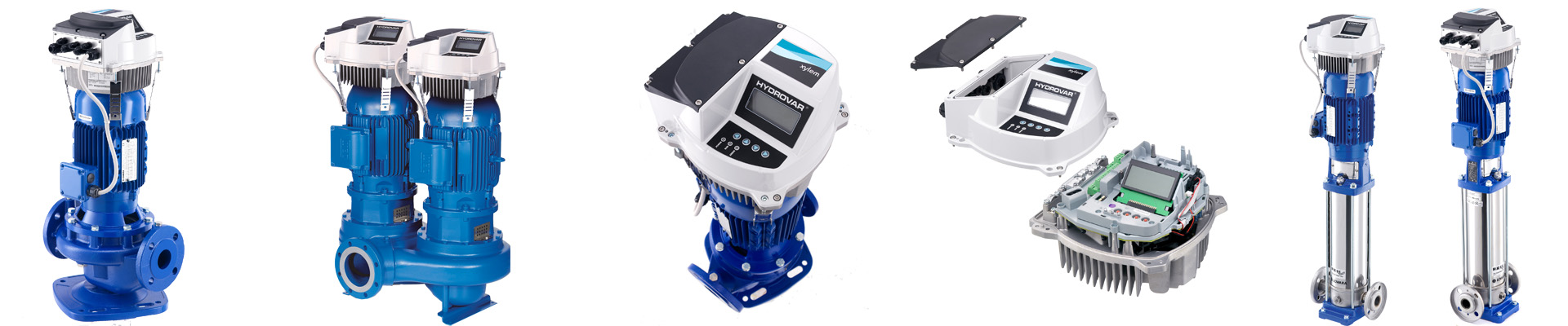 Pompele tip e-SV..H , e-LNE..H ,e-LNT..H economisesc timp și spațiu în timpul instalării. Hydrovar este livrat deja montat pe motor (pentru modele de până la 22kW). Racirea HYDROVAR este asigurata de ventilatorul motorului pompei și nu necesită panou de control.Pentru a funcționa, sunt necesare numai siguranțele de retea (Verificați reglementările locale de instalare electrică) O versiune HYDROVAR montată pe perete este disponibilă pentru puteri mai mari (până la 45 kW).