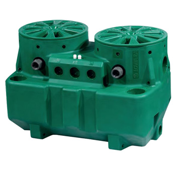Statiile de pompare compacte prefabricate tip DOUBLEBOX PLUS sunt dotate cu un recipient din PEHD avand un volum de 550 l in care sunt instalate doua pompe de tip DOMO, DOMO GRI sau DL.